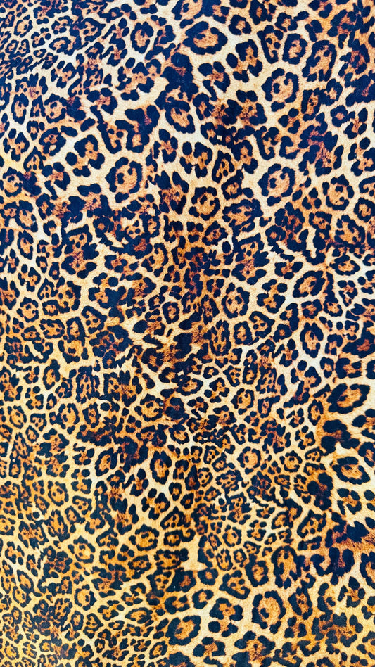 Wild Leopard design print on poly spandex medium weight 4-way stretch 58/60”