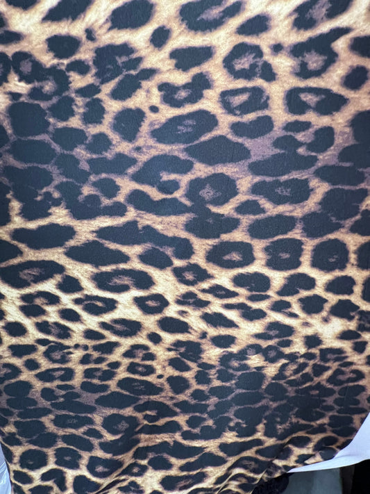 Exotic Brown Leopard design print on great Quality of Nylon spandex 4-way stretch 58/60” Sold by the YD. Ships Worldwide from Los Ángeles CA