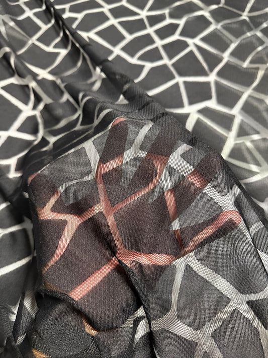 Giraffe exotic design on burnout power mesh 4-way stretch 58/60”