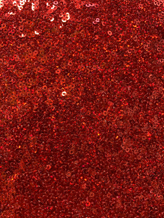 Hologram neon orange sequins embroidered on stretch spandex base 2-way 58/60” Sold by the YD. Ships Worldwide from Los Angeles California US