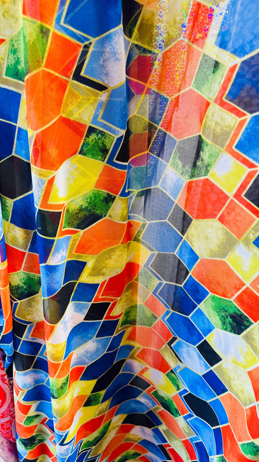 Honeycomb geometric design print on great quality of power mesh 4-way stretch 58/60” Sold by the YD. Ships worldwide from Los Angeles CA
