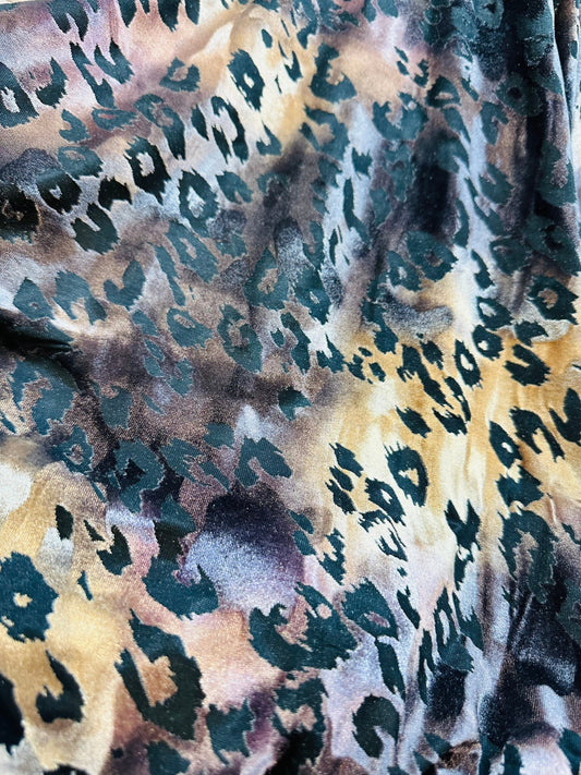 Leopard design in luxury burnout stretch velvet 4-way stretch 58/60” Sold by the YD.