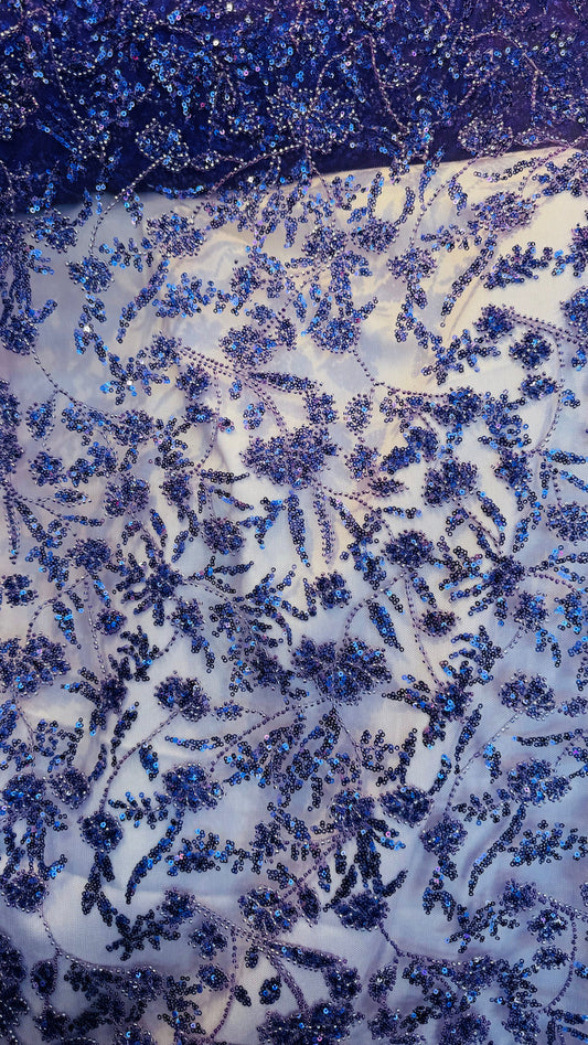 Luxury 3D sequins embroidered on spandex base 4-way stretch 58/60” Sold by the YD.