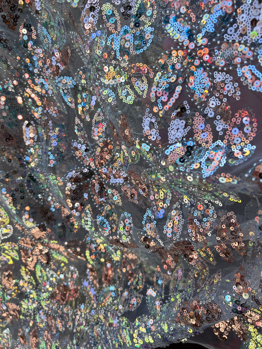 Luxury feathers design with sequins embroidered on stretch velvet 4-way 58/60” High quality fabrics by AlexLAFabrics