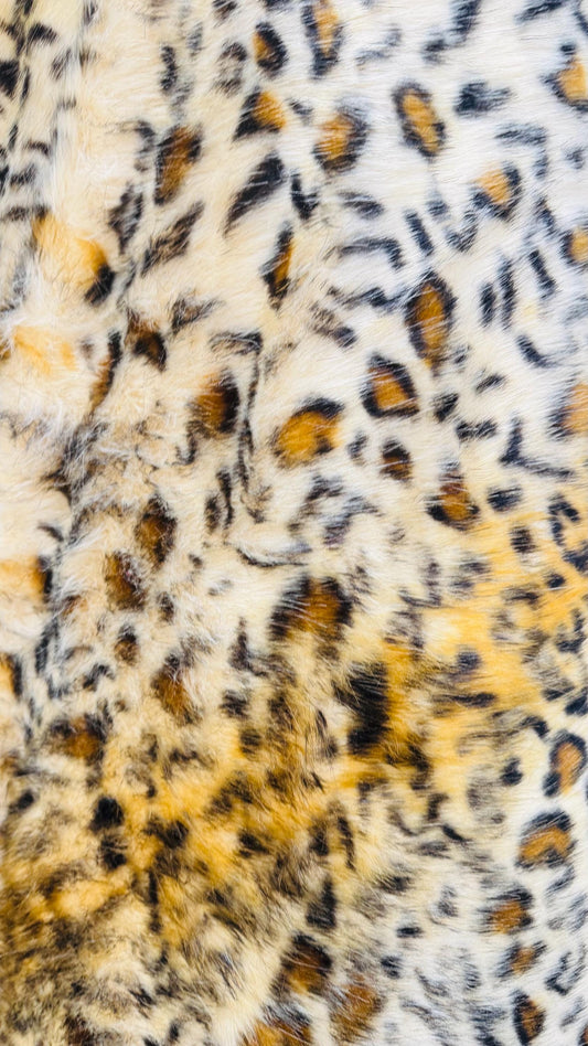 Luxury Faux Fur Exotic Leopard design high quality Fur 58/60” Sold by the YD and 1/2 yd Ships worldwide from Los Angeles California USA.