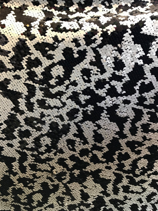 Animal print 5mm sequins 58/60" on Lycra base 2way stretch. Sold by the yd. Ships worldwide from Los Angeles California USA