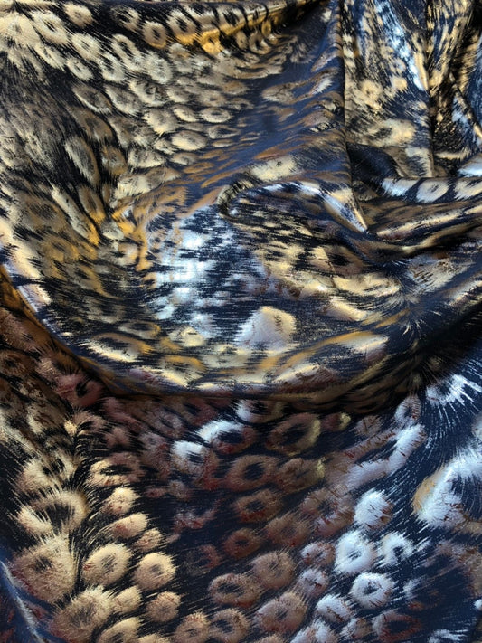 Animal print design black/gold metallic spandex 4way stretch 58/60" Sold by the YD. Ships worldwide from Los Angeles California USA.