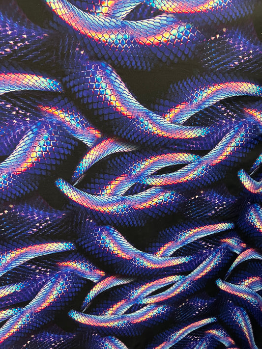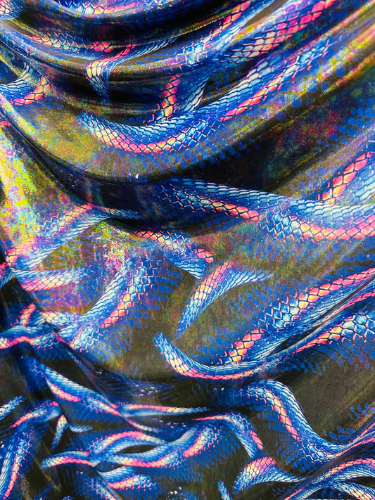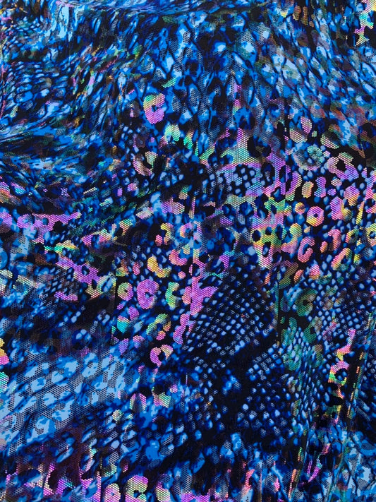 Animal print iridescent snake hologram foil metallic 4way stretch 58/60" Sold by the YD. Ships worldwide from Los Angeles California USA.