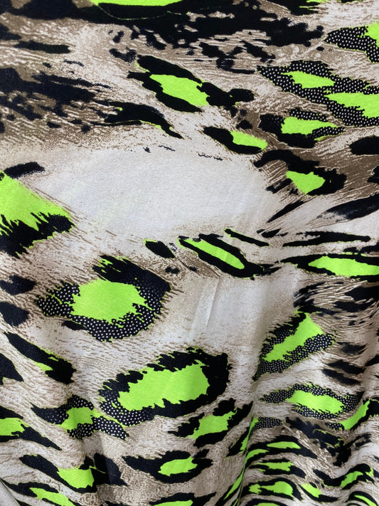 Animal print design great quality medium weight poly spandex 4-way stretch 58/60” Sold by the YD. Ships worldwide from Los Angeles CA USA.