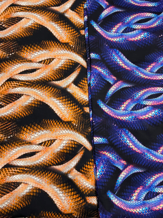 Anaconda snake design best quality of nylon spandex with iridescent foil 4-way stretch 58/60” Sold by the YD. Ships Worldwide from L.A CA