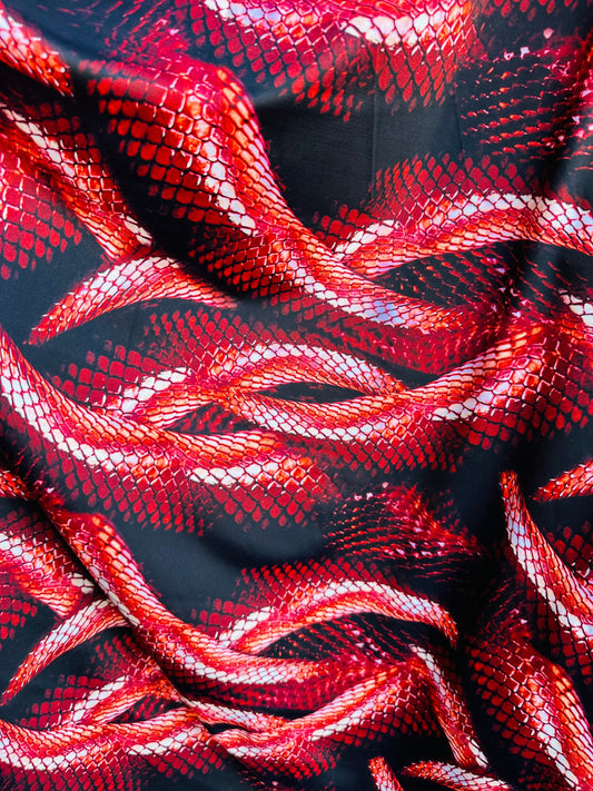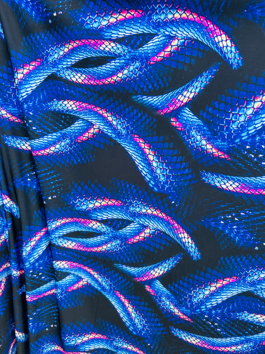 Anacondas design exotic Amazon snake print on best quality of heavy nylon spandex 4-way stretch 58/60” Sold by the YD. Ships worldwide