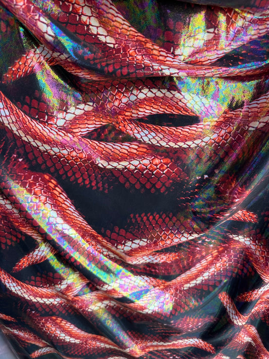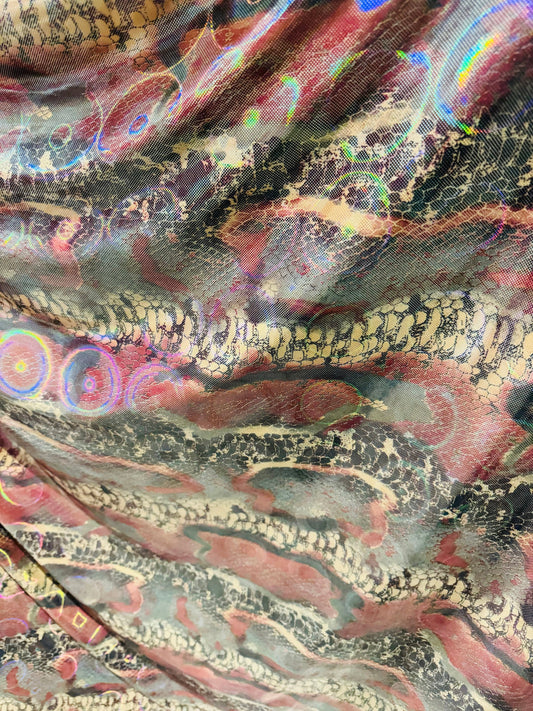 Anaconda design hologram metallic nylon spandex 4-way stretch 58/60” Sold by the YD.