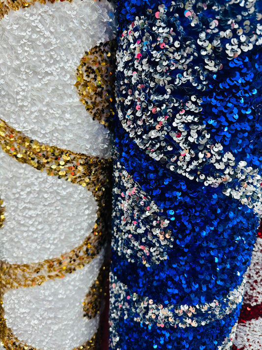 Luxury Wavy sequins design embroidered on stretch velvet 4-way stretch 2-tone sequins 58/60” Sold by the YD