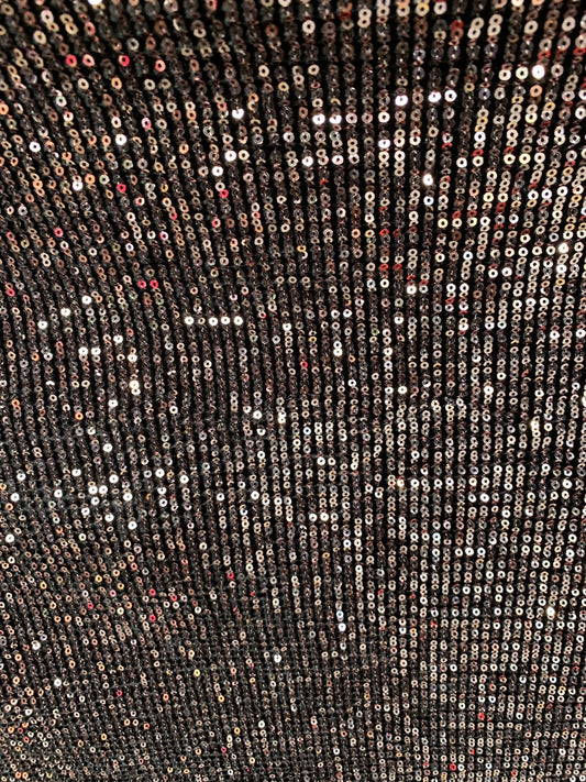 Mini disco shiny sequins on metallic poly spandex 2-way stretch 58/50” Sold by the YD. Ships worldwide from Los Angeles California USA