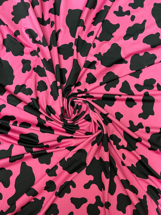 Moo Moo cow design Fuchsia/black print on best quality of nylon spandex 4-way stretch 58/60” Sold by the YD. Ships Worldwide from Los Angele