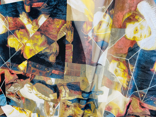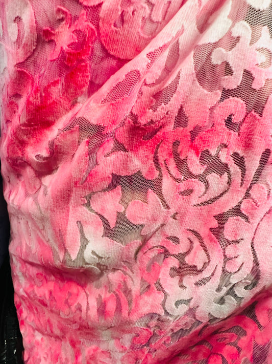 Burnout mesh damask design tie dye stretch mesh 2-way 58/60” Sold by the YD. Ships worldwide from Los Angeles California USA