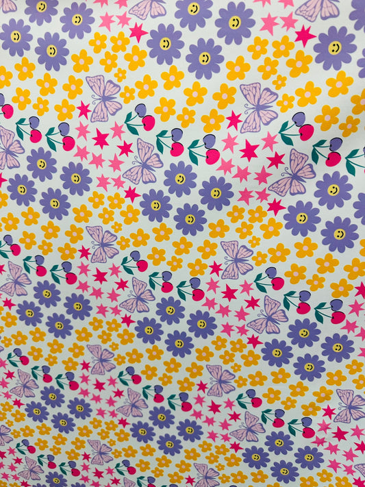 Butterfly and floral design with multi pastel colors print on great quality of nylon spandex 4-way stretch 58/60”