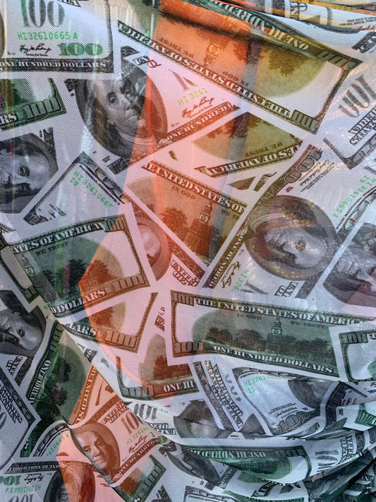 100 dollars money design print on stretch power mesh 4way stretch 58/60"Regular price $13.99 USDRegular priceUnit price / per-