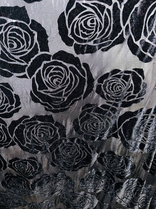 New rose design burnout velvet 4way stretch black/red 58/60" Sold by the YD. Ships worldwide from Los Angeles California USA.