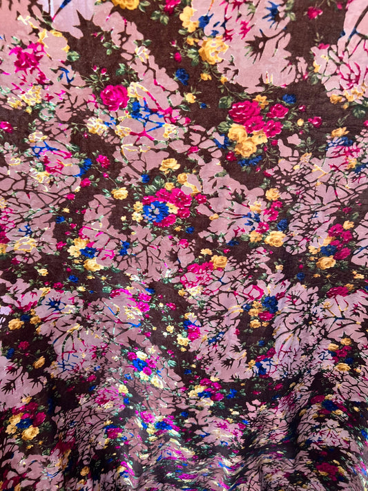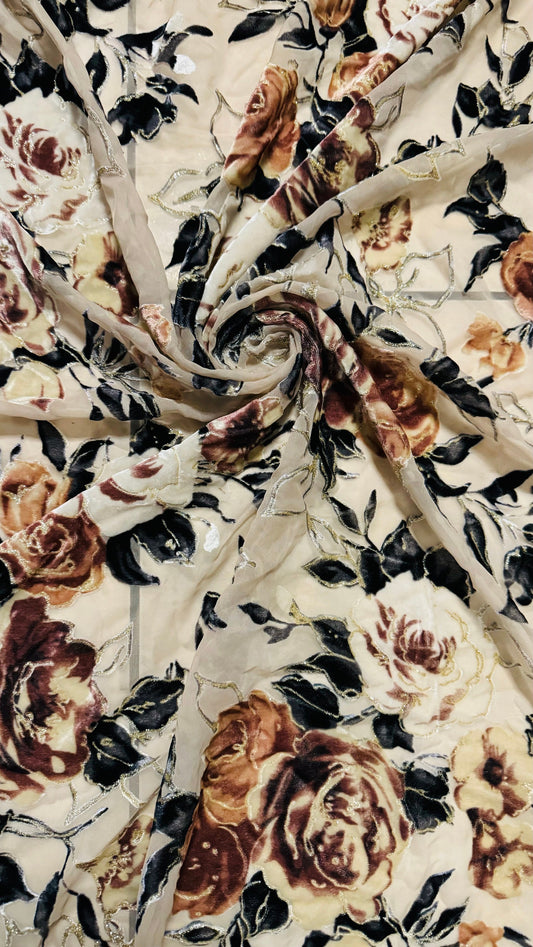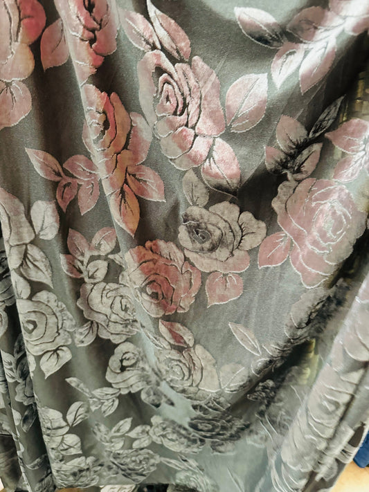 New burnout velvet floral design 2 tone 4way stretch 58/60" Sold bu the YD. Ships worldwide from Los Angeles California USA.