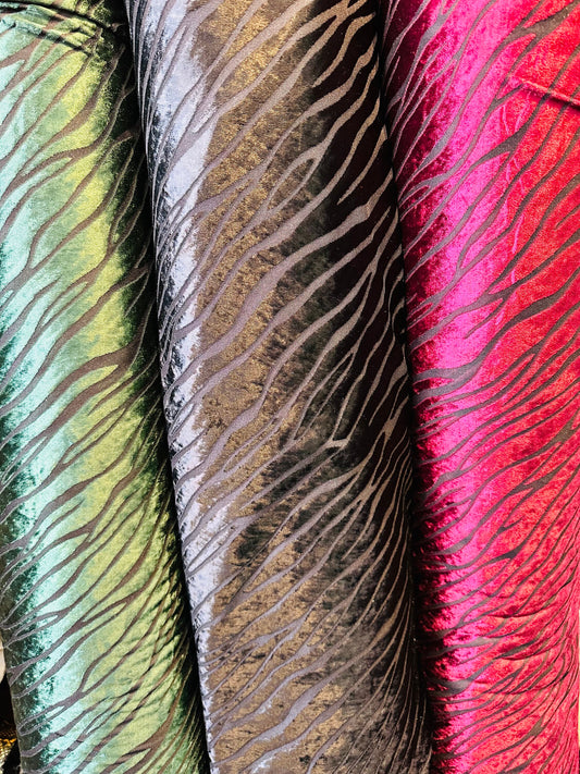 Zebra design burnout stretch velvet 2-way stretch 58/60” Sold by the YD.