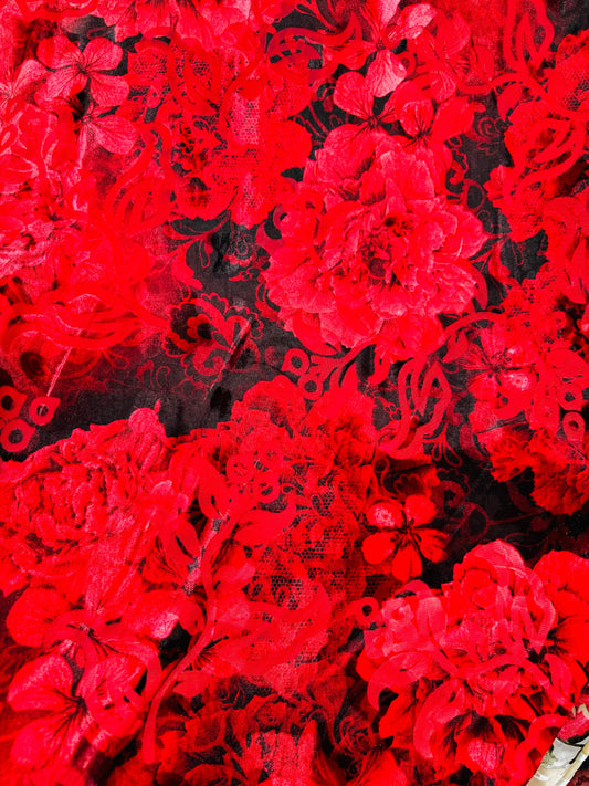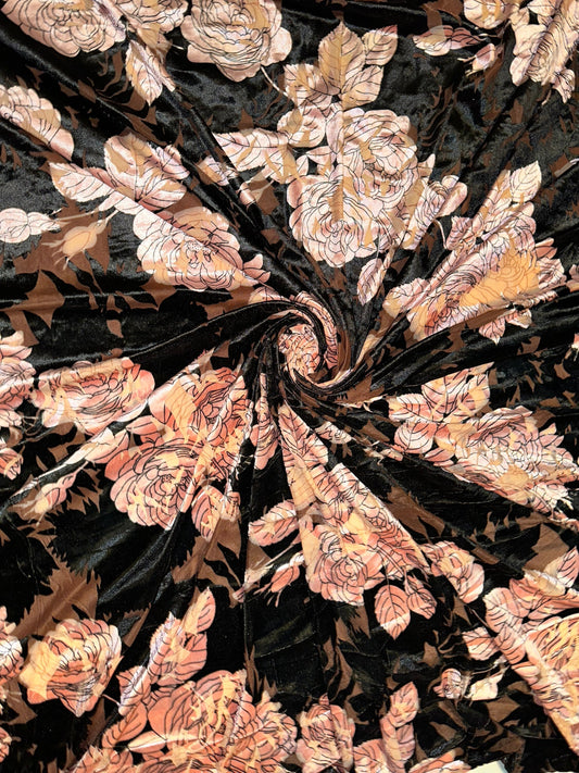 Luxury Italian Burnout stretch velvet Roses design silky high quality 4-way stretch 54/55” Sold by the YD. Ships worldwide from Los Angel