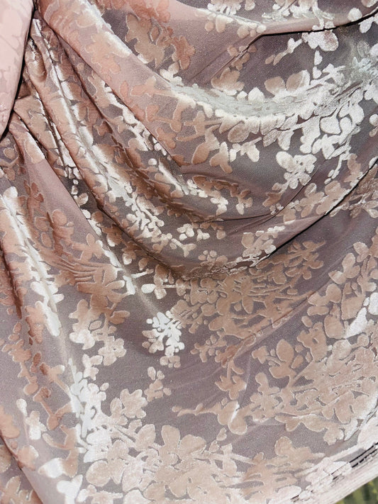 New Burnout stretch velvet lavender/Nude 4-way stretch 58/60” High quality fabrics by AlexLAFabrics