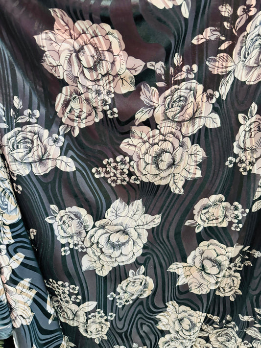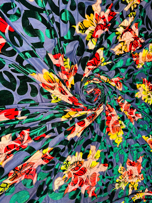 Flower design on silky burnout stretch velvet 4-way stretch 58/60” High quality fabrics by AlexLAFabrics