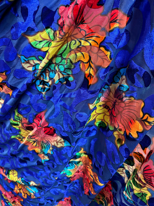 Victoria burnout design sapphire multicolor high quality of Italian fabrics by AlexLAFabrics