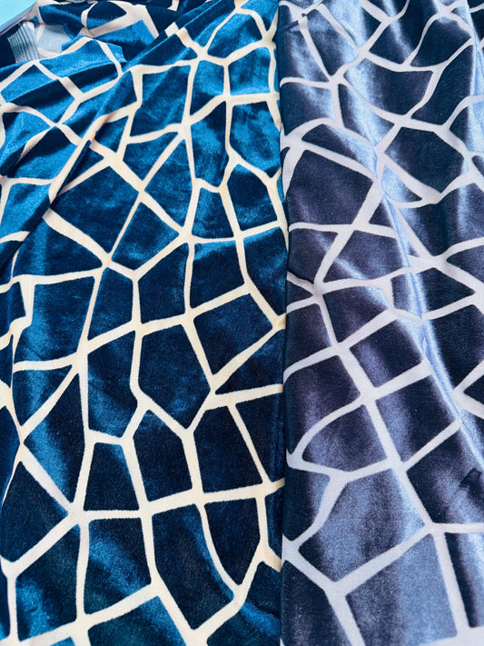New luxury burnout velvet Geometric design 4-way stretch 58/60” Sold by the YD. Ships worldwide from Los Angeles California USA.