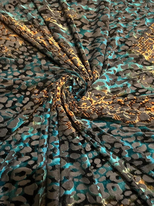 Exotic animal print designe burnout stretch velvet 4-way stretch 58/60” Sold by the YD. Ships Worldwide from Los Angeles California USA.