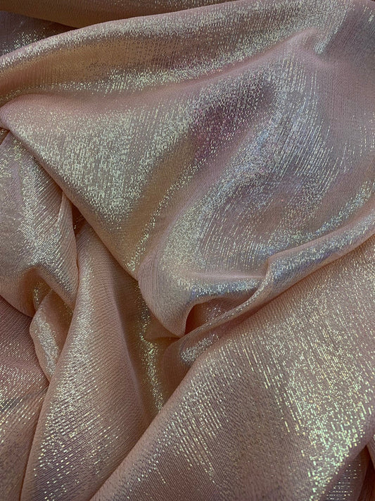 Silk metallic chiffon Blush/gold 2way Stretch 44/45" Sold by the YD. Ships worldwide from Los Ángeles California USA.