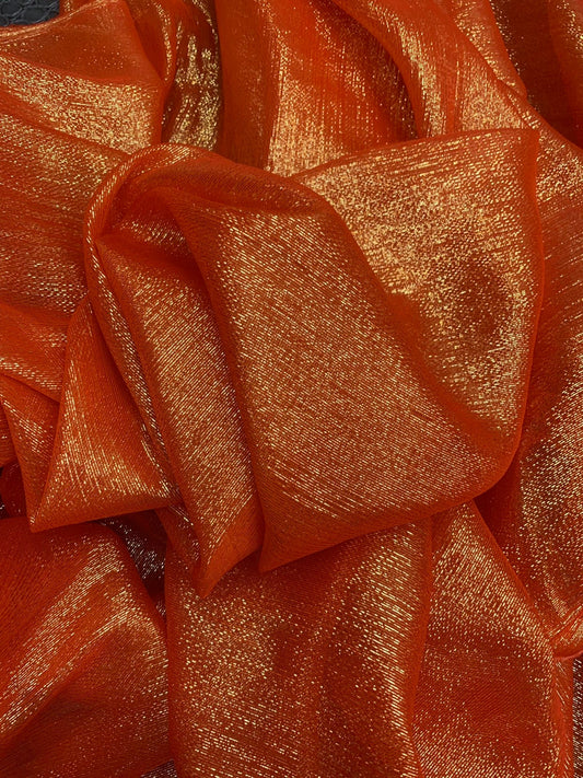 Silk metallic chiffon orange/gold 2way Stretch 44/45" Sold by the YD. Ships worldwide from Los Ángeles California USA.