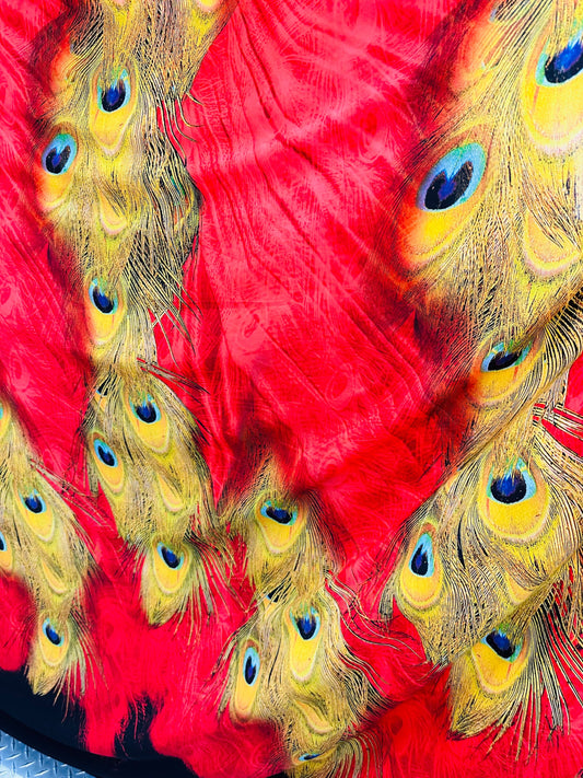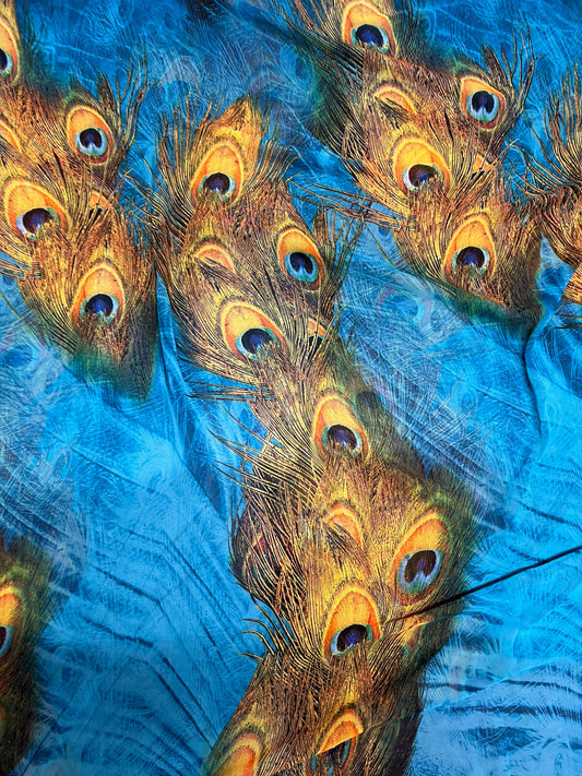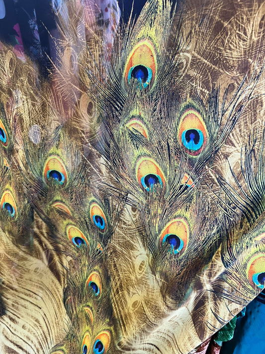 Exotic peacock design print on high quality of poly silk chiffon non stretch 58/60” Sold by the the YD. Ships worldwide from Los Angeles CA
