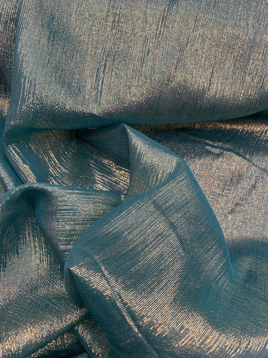 Silk metallic chiffon jade/gold 2way Stretch 44/44" Sold by the YD. Ships worldwide from Los Ángeles California USA.