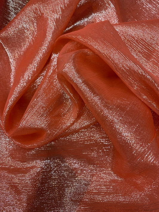 Silk metallic chiffon coral/silver 2way Stretch 44/45" Sold by the YD. Ships worldwide from Los Ángeles California USA.