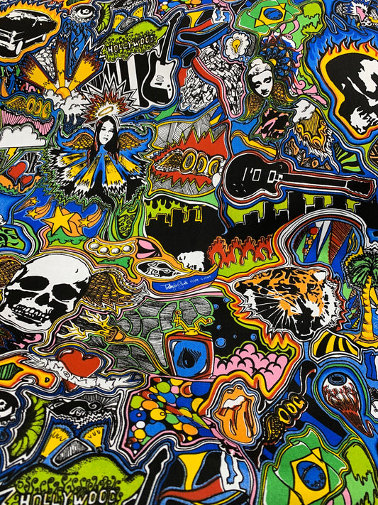 100% cotton skull print design multicolor very soft fabric non stretch fabric 54/55” Sold by the YD. Ships worldwide from Los Angeles CA.