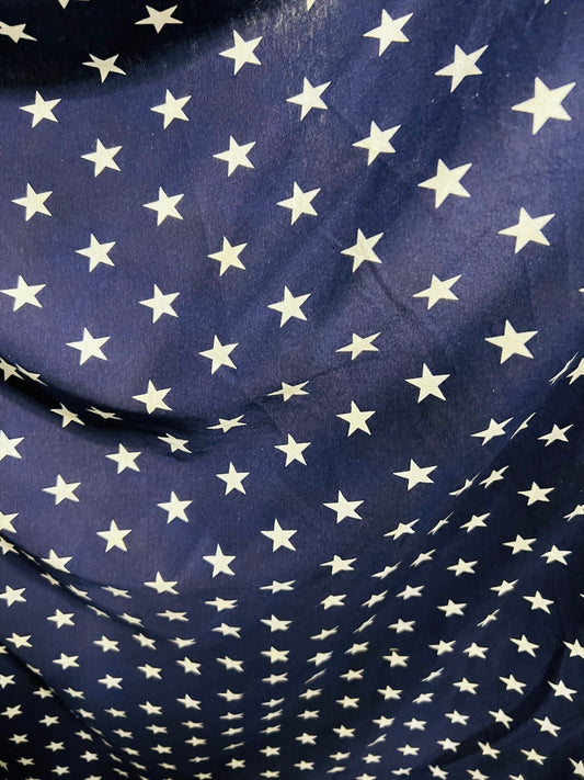 Freedom stars design print on cotton jersy 2-way stretch 58/60” Navy blue/White. Sold by the YD.