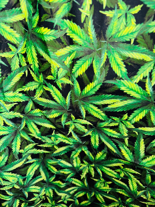 New marijuana cannabis design print on 100% cotton non stretch 45” Sold by the YD. Ships worldwide from Los Angeles California USA.