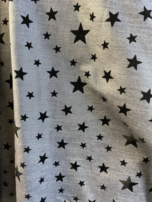 New denim with black stars design great quality non stretch 58/60” Sold by the YD. Ships Worldwide from Los Angeles California USA.