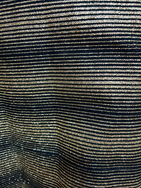 New Metallic denim Jlo design striped with gold glitter Non stretch 58/60” Sold by the YD. Ships Worldwide from Los Angeles California USA.