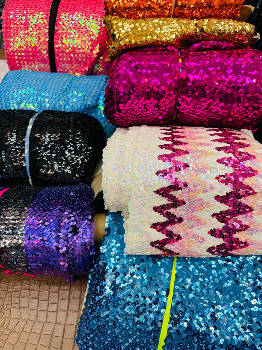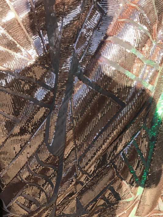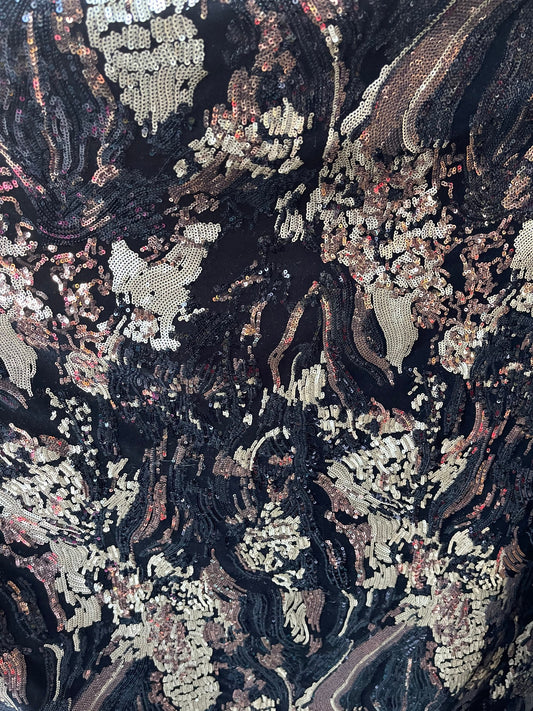 New abstract design luxury sequins embroidered on stretch velvet 2-way stretch 58/60” Sold by the YD. Ships Worldwide from Los Angeles CA.