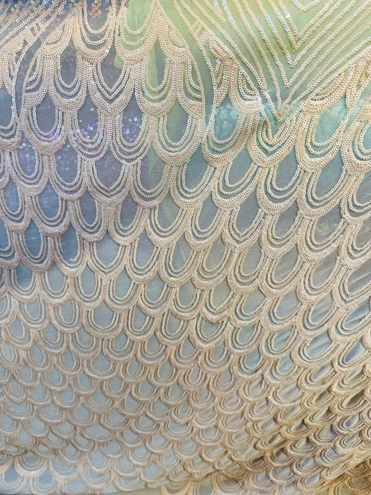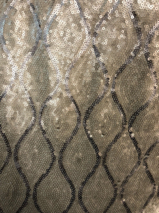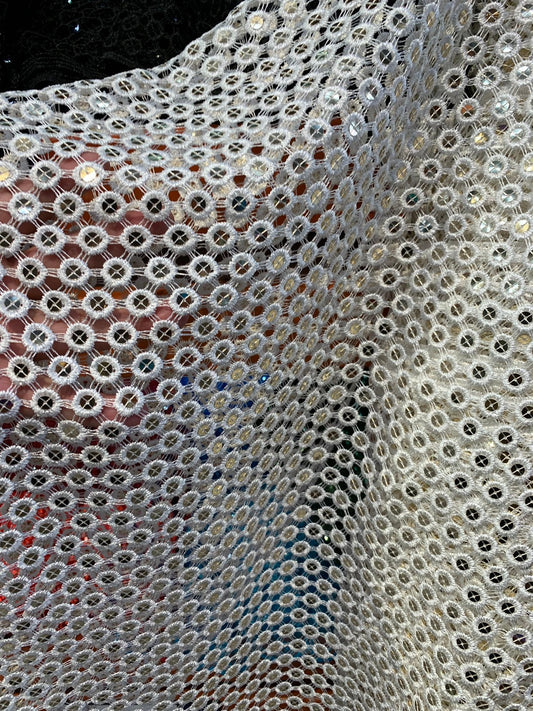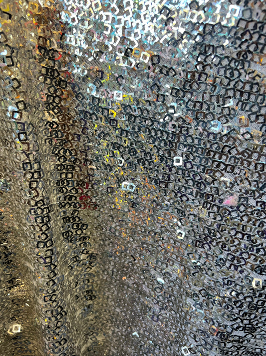 New sequin geometric design on stretch mesh base 2 way stretch 58/60" Sold by the yd. Ships worldwide from Los Angeles California USA.