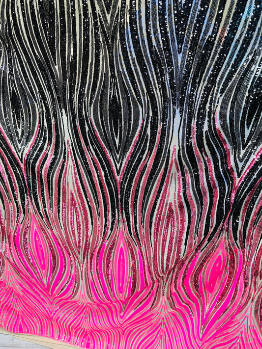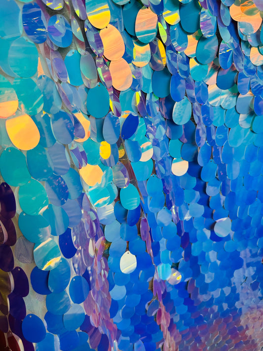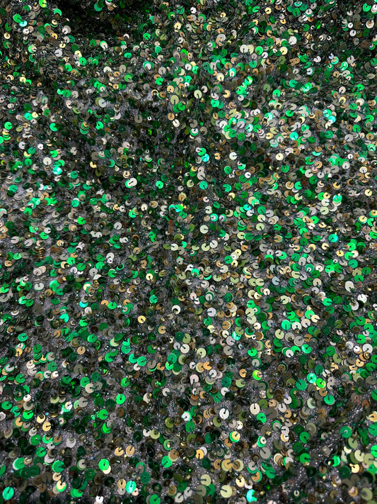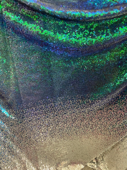 New Ombré design print on iridescent mini cosmic sequins embroidered on stretch mesh 2-way 55/57” Sold by the YD. Ships Worldwide