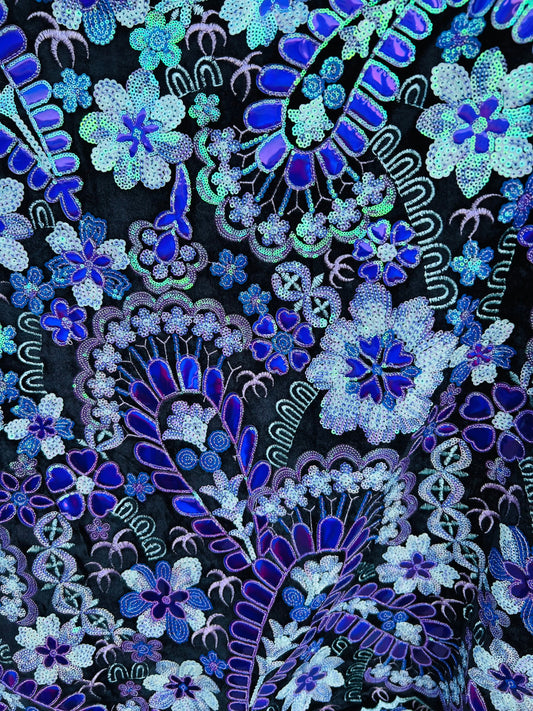 Luxury paisley design embroidered sequins on stretch velvet 2-way stretch 55/57” Sold by the YD. Ships Worldwide from Los Angeles California