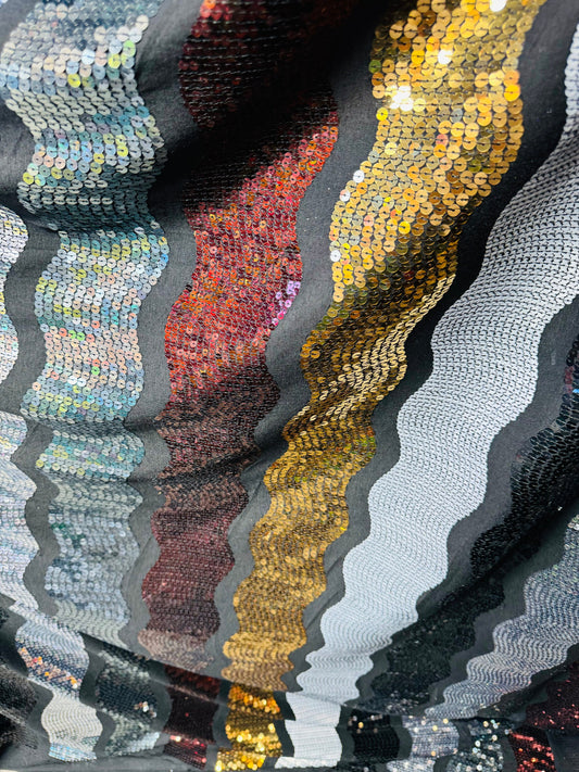 Wavy stripe sequins on spandex base 2-way stretch 58/60”
