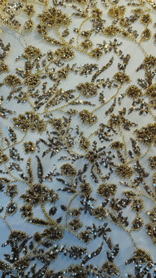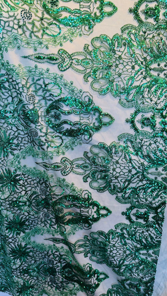 Luxury 3D Beaded Paris lace design embroidered on 4-way stretch mesh 55/57” High Quality fabrics by AlexLAFabrics