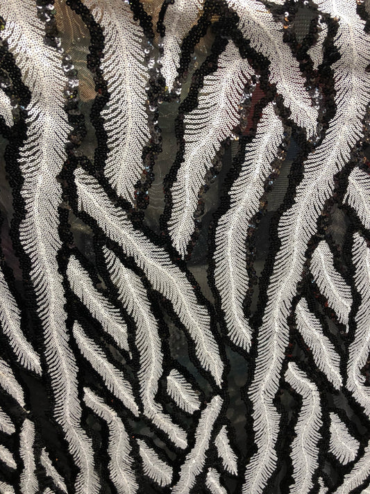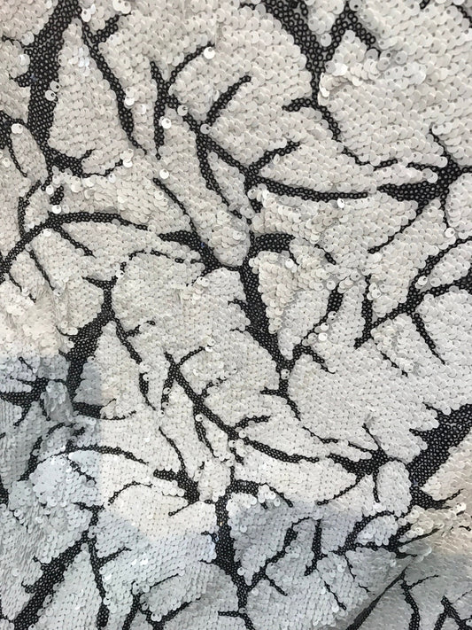 New sequins leaf design black/white 2way Stretch 58/60" Sold by the YD. Ships worldwide from Los Angeles California USA