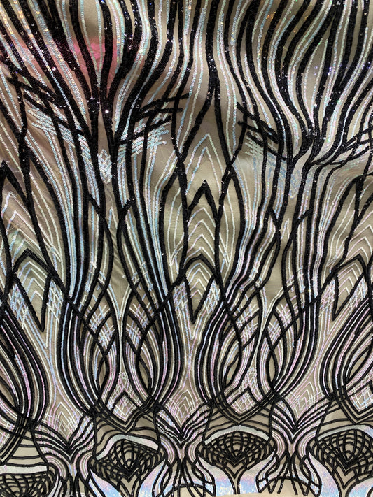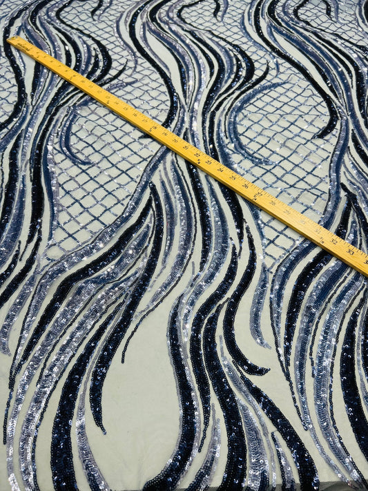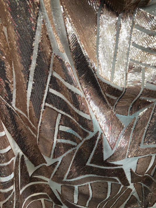 New Luxury abstract design embroidered sequins on stretch mesh 2-way stretch 55/57” Sold by the YD. Ships Worldwide from Los Angeles CA