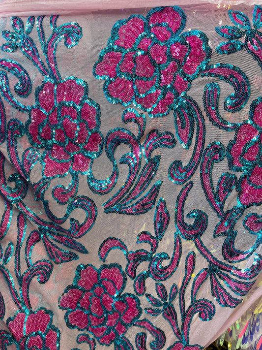 New Rose design shiny sequins embroidered on stretch mesh 2-way stretch 54/55” Sold by the YD. Ships Worldwide from Los Angeles California